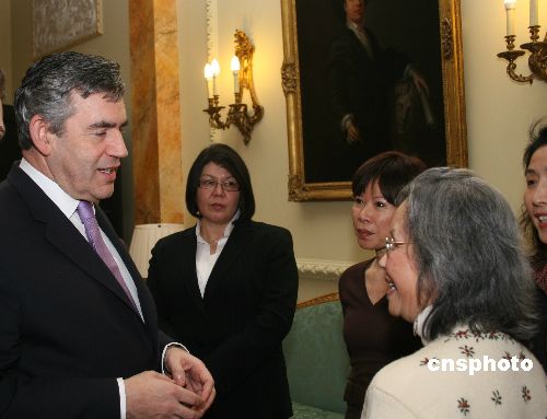 當(dāng)?shù)貢r間1月14日下午,即將訪華的英國首相布朗在唐寧街十號會見旅英華人華僑、中資機構(gòu)負(fù)責(zé)人、留學(xué)生等華人杰出代表。中新社發(fā) 李鵬 攝