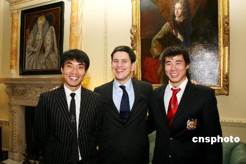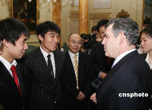 當地時間1月14日下午,即將訪華的英國首相布朗在唐寧街十號會見旅英華人華僑、中資機構負責人、留學生等華人杰出代表。中國足球明星鄭智和董方卓作為受邀代表一同出席。中新社發 李鵬 攝