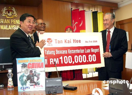 圖:大馬向中國捐款百萬美元雪災援助金