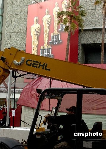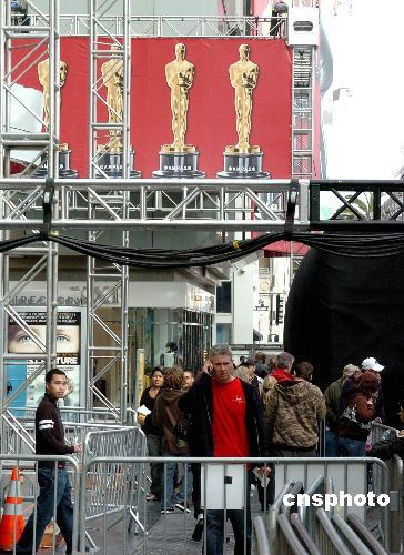 當地時間二月二十一日,美國洛杉磯好萊塢星光大道已經封鎖主要道路,為二月二十四日舉行美國第八十屆電影奧斯卡頒獎典禮作準備。中新社發 賈國榮 攝