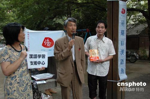 7月13日,在東京舉行的星期日漢語角第48次交流會上,日本僑報社宣布漢語學習支援中心正式成立。漢語學習支援中心的首個支援項目是,面向研究者的中文讀解力養成講座9月開講,由日本麗澤大學中文系三瀦正道教授擔綱,每周一下午5點至7點免費為各大學的研究生和年輕學者、漢語學習者提供權威服務。圖為三瀦正道教授(中)向漢語角參加者介紹漢語學習支援中心。中新社發 段躍中 攝