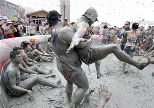 圖:韓國保寧泥漿節(jié) 游客盡情“美容”