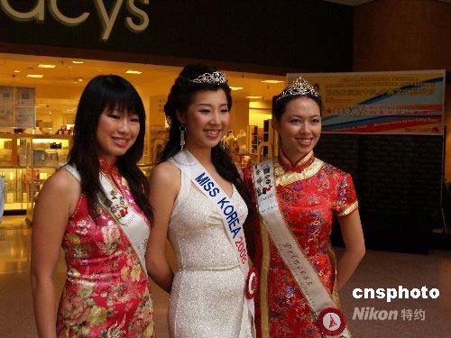 7月22日,2008年洛杉磯華埠小姐和韓國(guó)小姐亮相歡樂(lè)家庭賀中秋暨中美文化藝術(shù)節(jié)。中新社發(fā) 盧威 攝