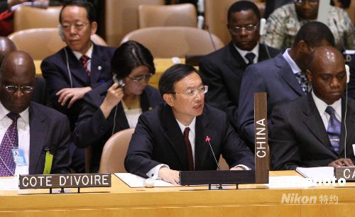 9月22日,為期一天的聯合國非洲發展需求高級別會議在紐約總部舉行,包括四十多位國家元首和政府首腦在內的一百六十多個國家的代表出席。中國外交部長楊潔篪出席會議并發言。中新社發 李靜 攝