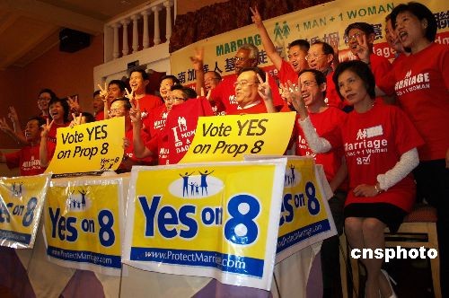 當(dāng)?shù)貢r(shí)間10月16日,美國南加州華人基督徒支持加州婚姻修憲提案,倡導(dǎo)一男一女婚姻制。中新社發(fā) 盧威 攝