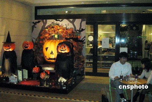10月21日晚,一對(duì)戀人在南瓜幽靈前悠閑地喝茶聊天。10月是收獲的季節(jié),而南瓜代表這一種碩果累累的喜悅。從10月中旬開(kāi)始,東京的CBD丸之內(nèi)商業(yè)大道,舉行了一場(chǎng)別開(kāi)生面的南瓜藝術(shù)展。被雕塑成各種形狀的南瓜展示在大街的兩側(cè)。而這一組“南瓜幽靈”最受人歡迎。中新社發(fā) 徐靜波 攝