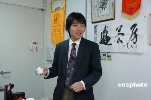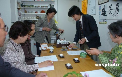 日本僑報社創辦的又一日中文化交流窗口--游茶房,在中國人聚居的池袋誕生。特別邀請人民中國雜志東京支局長、擁有中國茶藝師資格的于文主講中國茶文化。于文先生深入淺出的關于中國茶歷史的講解、如何品嘗中國茶的方法介紹等,受到日本參加者的好評。圖為11月4日于文在日本僑報社游茶房主辦的第三次中國茶文化講座演講。中新社發 段躍中 攝