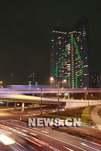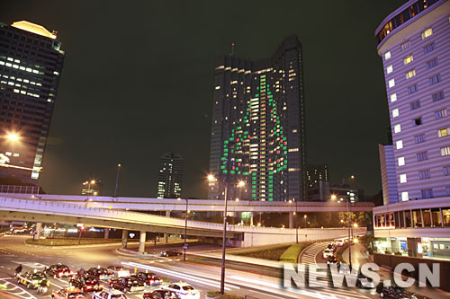 11月6日晚,日本首都東京一家酒店外墻用燈光組成一個高約100米的大型“圣誕樹”,以迎接即將到來的“圣誕節”。