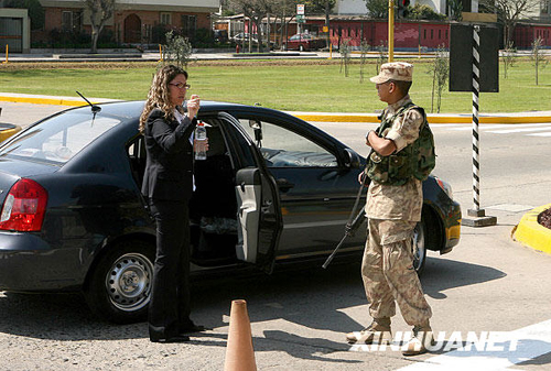 11月16日,在秘魯首都利馬的亞太經合組織(APEC)領導人非正式會議國際新聞中心,執勤士兵檢查槍械。秘魯軍方日前在利馬部署了近一萬名士兵,以確保將于11月22日至23日舉行的APEC第十六次領導人非正式會議安全舉行。