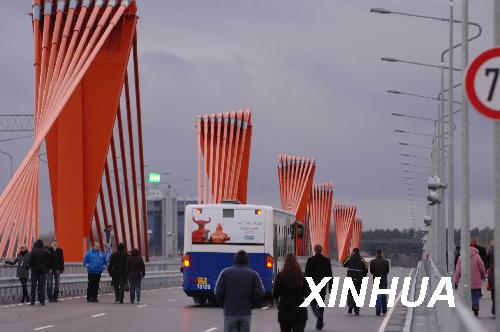 11月17日,拉脫維亞恢復(fù)獨立以來建設(shè)的最大規(guī)模建筑——南橋正式投入使用。在拉脫維亞首都里加建設(shè)的南橋長803米,寬34.28米,2004年11月開始動工興建。新華社記者楊德洪攝