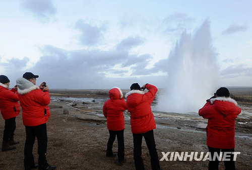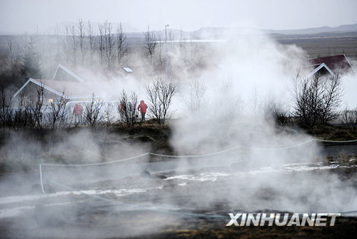 11月19日,在冰島首都雷克雅未克北部著名的間歇泉附近,村鎮籠罩在白霧之中。間歇泉隔幾分鐘便噴射一次,最高高度可達60米,是冰島主要的地熱奇觀之一。