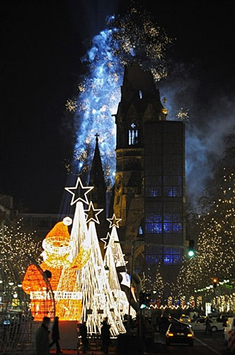 德國首都柏林上空焰火綻放,慶祝圣誕市場開張。