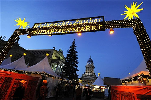 在德國首都柏林,圣誕市場里人來人往。