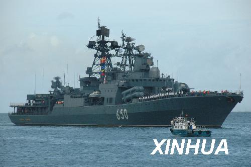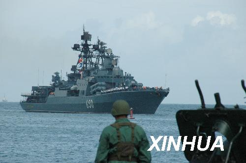 11月25日,俄羅斯“恰巴年科海軍上將”號大型反潛艦駛入委內瑞拉北部港口拉瓜伊拉。俄羅斯總統梅德韋杰夫訪問委內瑞拉前夕,四艘軍艦組成的俄羅斯北方艦隊艦艇編隊25日抵達拉瓜伊拉,準備參加與委內瑞拉海軍從12月1日開始的聯合軍事演習。新華社記者張笑然攝