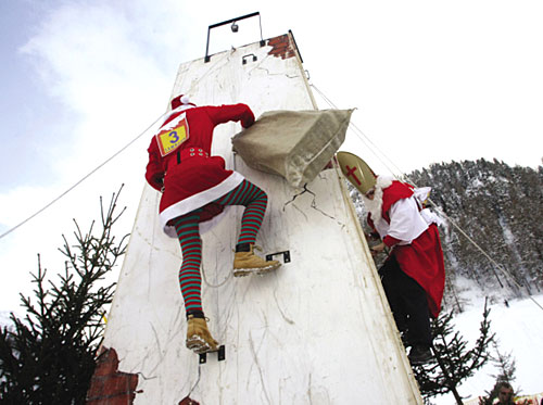 日前,瑞士阿爾卑斯山東部的一個村莊,一年一度的“圣誕老人全國錦標賽”正在如火如荼地舉行著。來自世界各國的15支參賽隊伍紛紛使出渾身解數。這次的比賽項目包括了攀爬煙囪以及驢子競賽等。在比賽過程中,參賽者們必須打扮成圣誕老人的模樣,身上還要背個裝滿禮物的麻包袋。