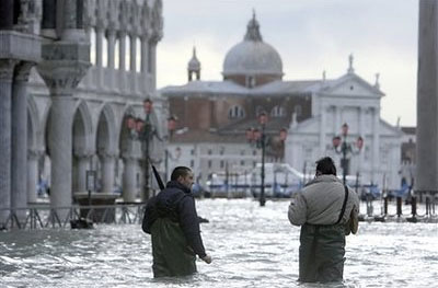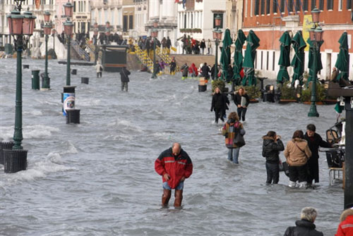 12月1日,由于海水上升,威尼斯城幾乎所有街道都被海水淹沒,圣馬可廣場上的水深達80厘米。威尼斯當局發出警報,稱海水可能要比正常水位上升1.6米,水城威尼斯真的變成了“水城”。