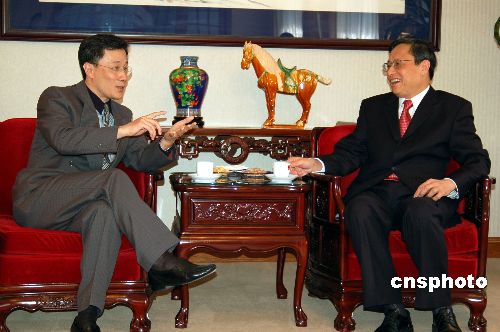 中國駐美大使周文重最近接受美西《僑報》總裁謝一寧專訪,指出中美關系30年取得的進步超過了任何人的想象。中新社發 李珍玉 攝