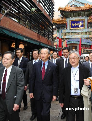 2009年1月23日上午,中國駐日本國特命全權大使崔天凱冒雨前往橫濱中華街,向當地華人華僑拜年。崔天凱與橫濱華僑總會會長任政光親切會談,慰問熱心資助教育的愛國華僑吳桂顯先生的遺孀,在臺灣同胞茶店品茶論道等,親身體驗當地華人生活。崔天凱還視察了橫濱中華街關帝廟、媽祖廟等建筑,并出席華僑主辦的歡迎午宴。中新社發 侯宇 攝