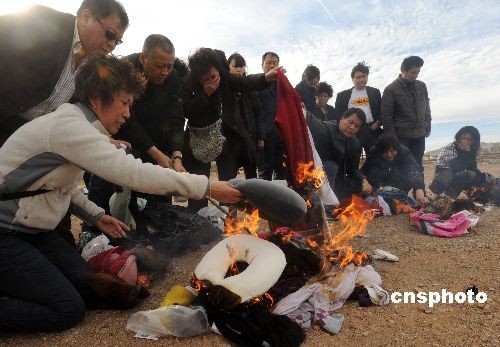 當地時間二月五日下午,中國旅游團車禍遇難者家屬來到事故現場——美國亞利桑那州九十三號公路二十八英里處舉行悼念活動,寄托對親人的哀思。中新社發 張煒 攝
