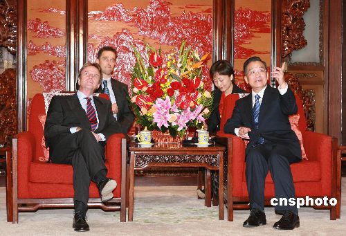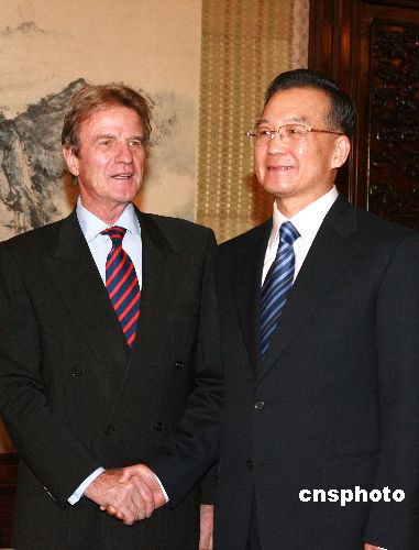 十月三十一日,中國國務院總理溫家寶在北京會見法國外交部部長貝爾納·庫什內。中新社發 廖文靜 攝