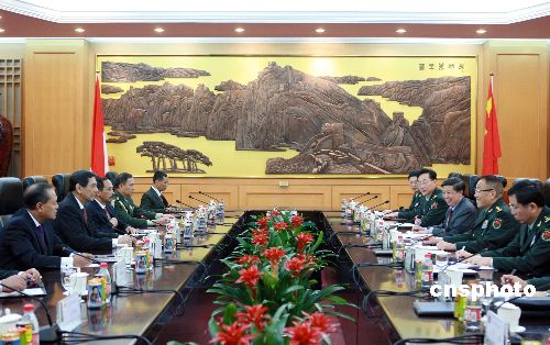 十一月七日,中華人民共和國中央軍委副主席、國務委員兼國防部長曹剛川在北京舉行儀式歡迎印度尼西亞國防部長尤沃諾·蘇達爾索諾,隨后雙方舉行了會談。中新社發 廖文靜 攝