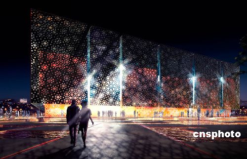 十一月十六日,阿拉伯聯合酋長國在上海與中國方面正式簽署參展2010年上海世博會合同,并公布阿聯酋國家館設計方案。阿聯酋是首個與中方簽約參展上海世博會的中東國家。圖為阿聯酋國家館的璀璨夜景效果圖。中新社發 世博局 攝