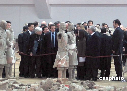 北京時間二十五日上午,法蘭西共和國總統尼古拉·薩科齊抵達西安,開始了他此次的訪華之旅。中新社發 冽瑋 攝
