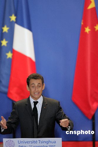 正在中國訪問的法國總統尼古拉·薩科齊,11月27日上午到中國著名學府清華大學發表演講,并接受學生提問。中新社發 任晨鳴 攝