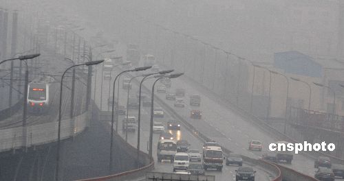 12月11日,大連東北快速路上,霧天路滑,車輛減速行駛。當日,受惡劣天氣影響,遼寧高速公路全線封閉。中新社發 劉德斌 攝