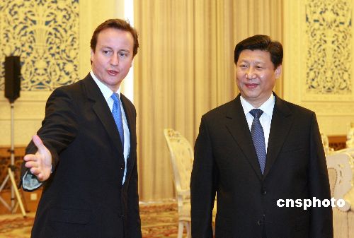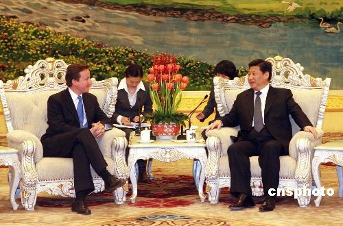 十二月十九日,中共中央政治局常委、書記處書記習近平在北京人民大會堂會見了由英國保守黨領袖戴維·卡梅倫率領的英國保守黨代表團。中新社發 廖文靜 攝