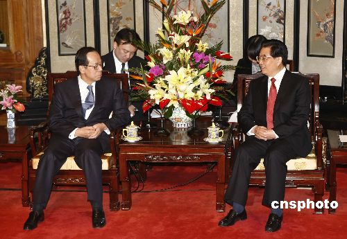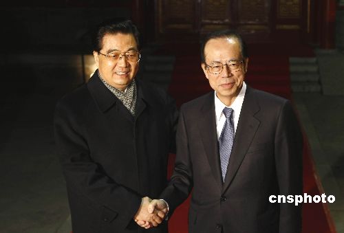 十二月二十八日,中國國家主席胡錦濤在北京釣魚臺國賓館養源齋會見日本首相福田康夫。中新社發 盛佳鵬 攝