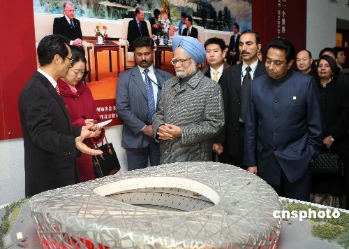 1月13日,印度總理辛格來到北京市“2008”工程展示中心,參觀2008年北京奧運會場館建設。這是辛格擔任印度總理以來首次訪問中國,也是時隔五年后印度總理再次來訪。中新社發 盛佳鵬 攝