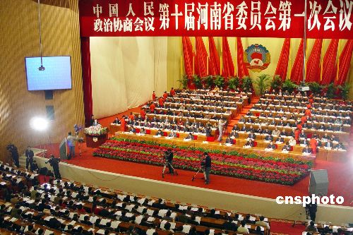 一月十四日上午,河南省政協十屆一次會議在鄭州開幕。本次會議共歷時八天半,有二十八個界別的八百六十五名委員出席本次會議。中新社發 李志全 攝