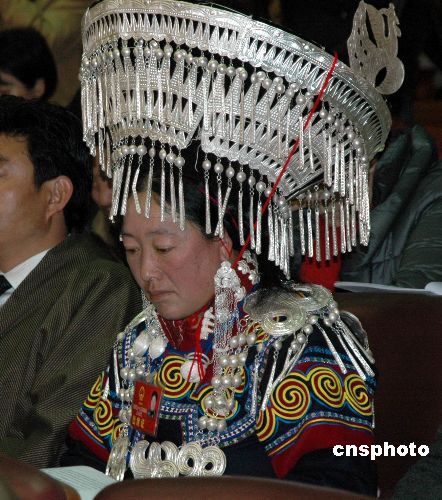 圖為少數民族代表在聽取報告。