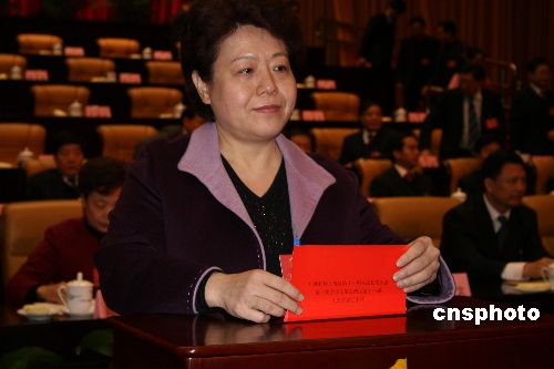 一月二十六日,廣西壯族自治區第十一屆人大一次會議第四次全體會議上,廣西壯族自治區人事廳廳長李康(壯族)當選為廣西壯族自治區副主席,成為本屆廣西自治區政府唯一的女性副主席。她是十七屆中共中央候補委員。圖為李康在會上進行投票。中新社發 林艷華 攝