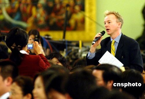三月十二日上午,十一屆全國人大一次會議在北京人民大會堂舉行記者招待會,中外記者踴躍發(fā)問。中新社發(fā) 王東明 攝