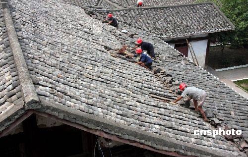圖為施工隊伍正抓緊修復明月小學的部分教室。2008年5年12日四川汶川大地震波及華鎣市,震感強烈,致使該市學校大面積不同程度受災,據統計,有11所學校受災,受損面積8200平方米,損失680萬余元,致使近1500名學生不能正常行課。災情發生后,四川華鎣市委市政府立即組織市教育局和各學校迅速行動,啟動了應急預案,各級領導在第一時間分赴受災學校指揮指導抗災救災工作,確保了師生生命財產安全,無一例地震傷亡事故發生;同時,他們在組織專家鑒定后,立即籌集資金,組織施工隊伍修復損壞不大的教室,使學生盡快復課。
