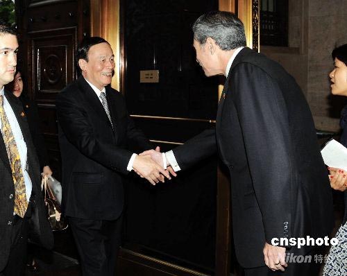 6月16日,中國國家主席胡錦濤的特別代表、中國國務院副總理王岐山率團到達美國首都華盛頓,參加即將于17日舉行的第四次中美戰略經濟對話。圖為美國商務部長古鐵雷斯在美國商會迎接王岐山副總理。中新社發 邱江波 攝