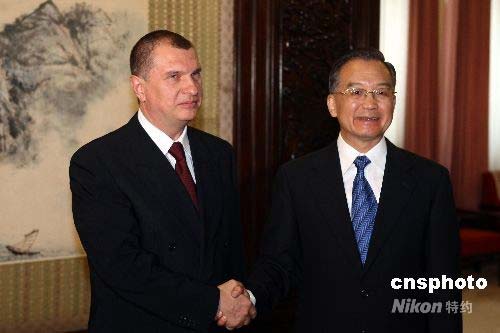 7月26日,中國國務院總理溫家寶在北京中南海紫光閣,會見俄羅斯副總理謝欽。中新社發(fā) 盛佳鵬 攝