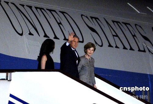 8月7日晚,美國總統布什抵達北京,將出席北京奧運會開幕式。 中新社發 王東明 攝