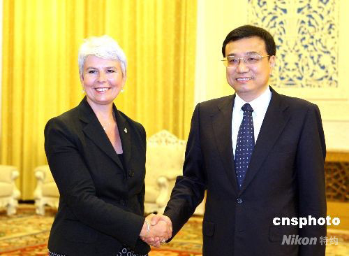 9月8日,中國國務院副總理李克強在北京人民大會堂會見克羅地亞副總理科索爾。中新社發 廖文靜 攝