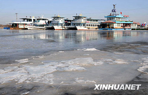 圖:松花江江水結(jié)冰全線停航
