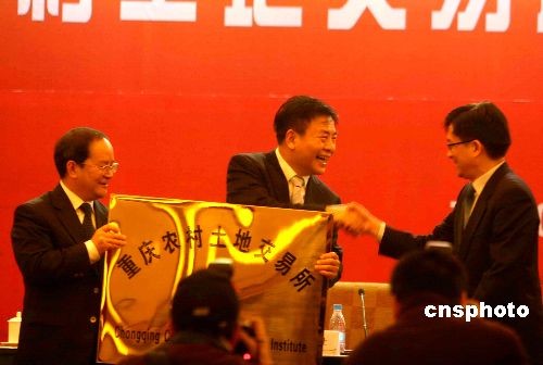 12月4日,醞釀已久的重慶農村土地交易所正式掛牌成立。該交易所由重慶市政府出資成立,系非營利性事業法人機構,實行現代企業管理模式,主要從事地票交易。所謂地票,指包括農村宅基地及其附屬設施用地、鄉鎮企業用地、農村公共設施和農村公益事業用地等農村集體建設用地,經過復墾并經土地管理部門嚴格驗收后產生的指標。中新社發 郭晉嘉 攝