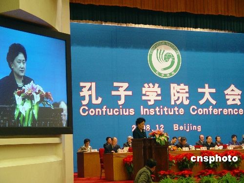 每年舉行一次的孔子學(xué)院大會(huì)十二月九日下午在北京人民大會(huì)堂開幕,中共中央政治局委員、國務(wù)委員劉延?xùn)|在講話中對(duì)下一步如何辦好孔子學(xué)院,提出了四點(diǎn)建議,即堅(jiān)持辦學(xué)宗旨、注意提高質(zhì)量、鼓勵(lì)探索創(chuàng)新、推動(dòng)平等合作。本屆孔子學(xué)院大會(huì)的主題為“孔子學(xué)院與全球化教育”,來自七十八個(gè)國家和地區(qū)的約五百位大學(xué)校長(zhǎng)和孔子學(xué)院代表將在今后的會(huì)議中圍繞漢語推廣與世界多元文化發(fā)展、孔子學(xué)院對(duì)大學(xué)和當(dāng)?shù)氐呢暙I(xiàn)等議題進(jìn)行廣泛交流。中新社發(fā) 應(yīng)妮 攝