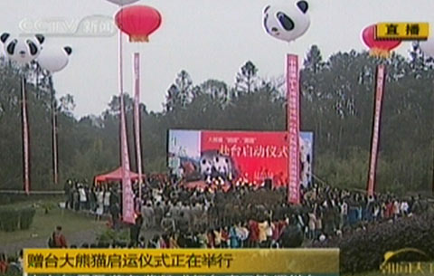 12月23日早8時,贈臺大熊貓啟運及雅安人民歡送儀式在四川雅安碧峰峽大熊貓基地舉行。