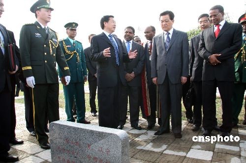 正在坦桑尼亞進(jìn)行國(guó)事訪問的中國(guó)國(guó)家主席胡錦濤,二月十五日在坦桑尼亞總統(tǒng)基奎特陪同下,專程前往位于首都達(dá)累斯薩拉姆市郊的中國(guó)援坦專家公墓憑吊。圖為胡錦濤主席在靳成威烈士的墓前久久佇立,他動(dòng)情地說(shuō):“靳成威同志,我代表你的家屬來(lái)看你了!”中新社發(fā) 齊彬 攝