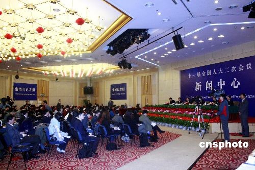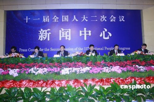 3月11日上午11時,十一屆全國人大二次會議新聞中心舉行“當前環境保護形勢和任務”專題采訪,邀請環境保護部副部長張力軍(分管污染防治與減排、環境執法等)、吳曉青(分管環評、監測、環境科技等),環境保護部污染防治司司長翟青,環境保護部環境影響評價管理司司長祝興祥,環境保護部生態保護司司長莊國泰,在大會新聞中心接受中外記者采訪。中新社發 金立冬 攝
