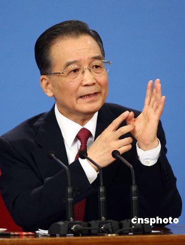 3月13日上午,溫家寶總理舉行中外記者招待會。溫家寶強調,其實外界沒有真正讀懂中國政府在世界經濟危機背景下所采取的刺激經濟一攬子計劃的全部內涵。他搬著手指詳細介紹了一攬子計劃所包括的四項內容,就是大規模的政府投入、大范圍的產業調整和振興、大力度的科技支撐和大幅度地提高社會保障水平。這四項是互相聯系、不可分割的整體,它體現了遠近結合和標本兼治的宗旨。中新社發 杜洋 攝