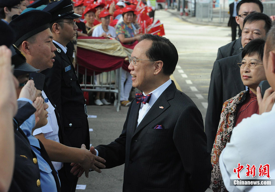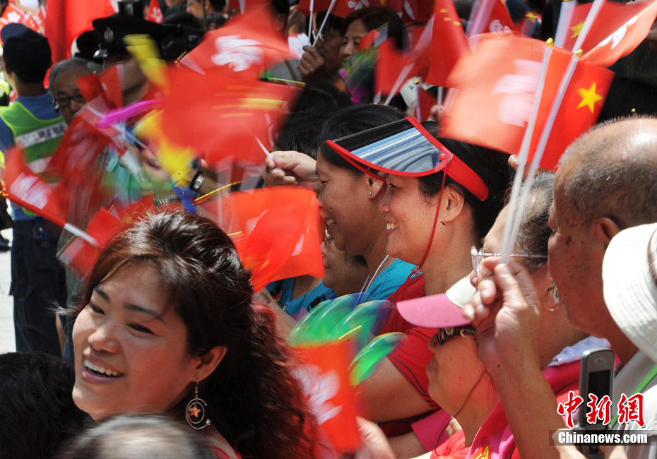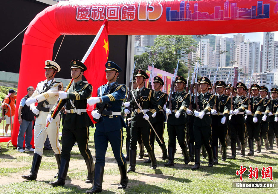7月1日,香港特別行政區在金紫荊廣場隆重舉行升旗儀式﹐慶祝香港特別行政區成立十三周年。中新社發 鄭祚聲 攝