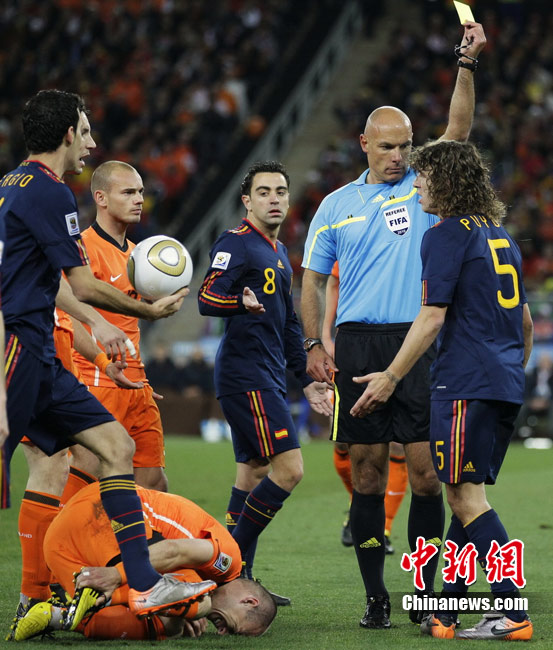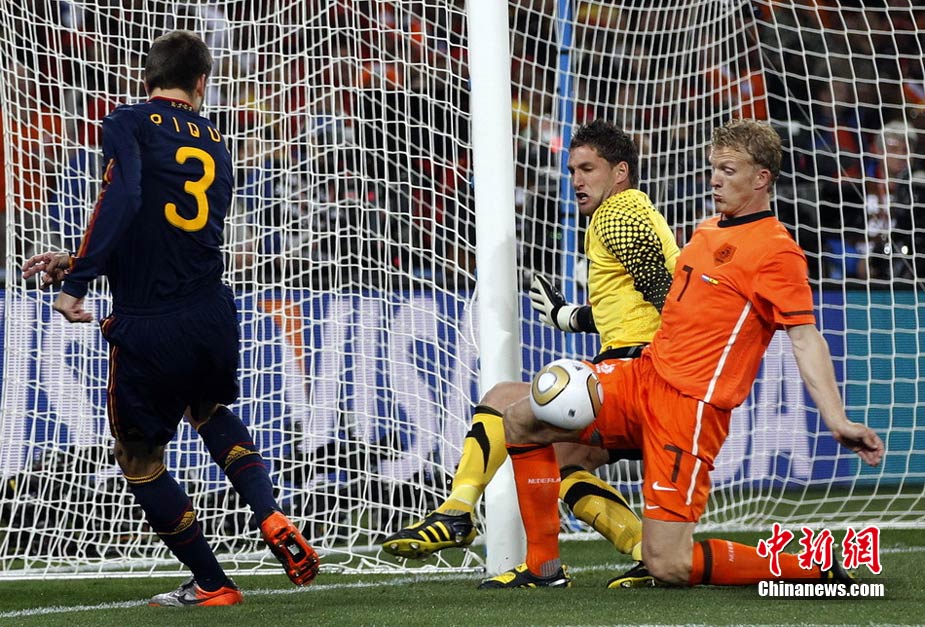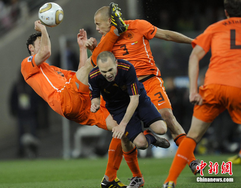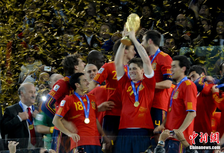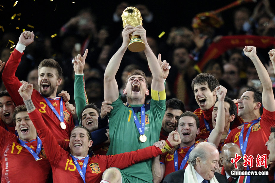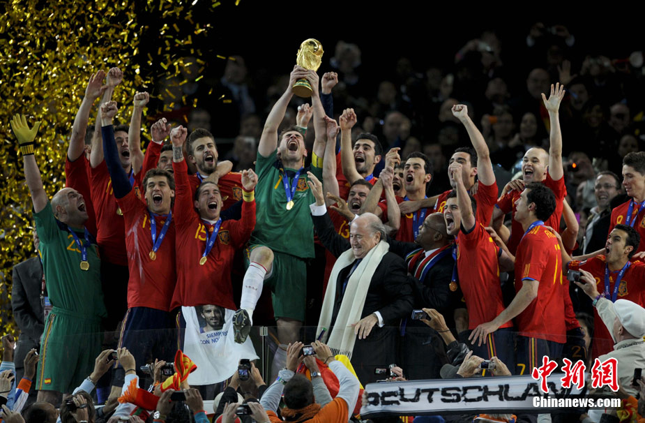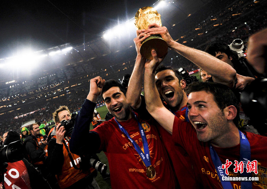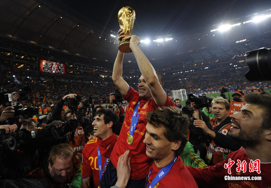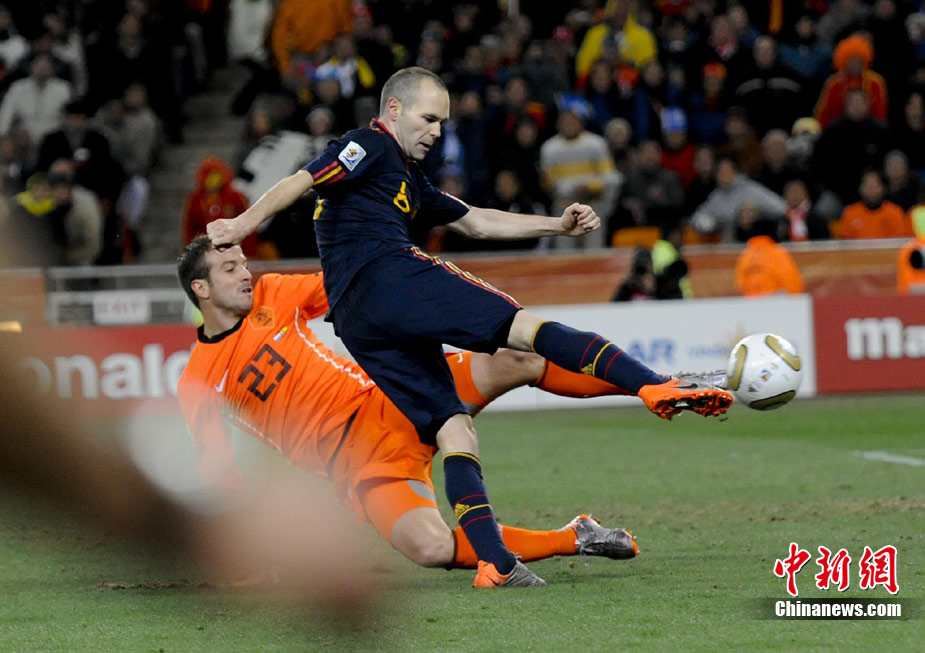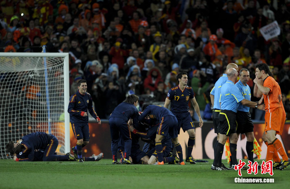 北京時(shí)間7月12日凌晨2:30,南非世界杯迎來了最終的決賽,在約翰內(nèi)斯堡的足球城球場由荷蘭隊(duì)對陣西班牙。最終雙方經(jīng)過120分鐘鏖戰(zhàn),伊涅斯塔在第116分鐘攻入全場唯一一粒進(jìn)球,絕殺十人應(yīng)戰(zhàn)的荷蘭隊(duì),史上首次奪得冠軍。